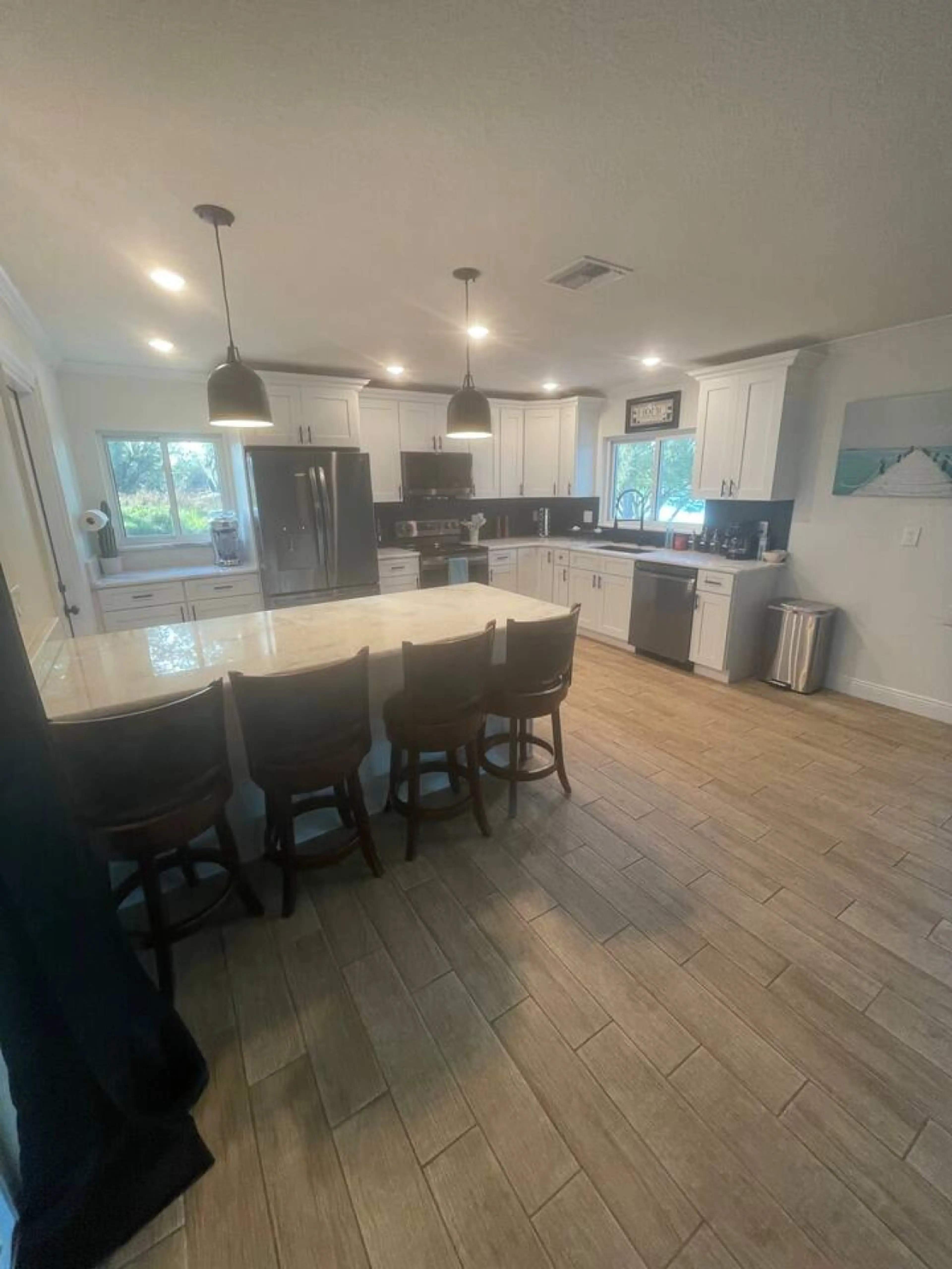 Spacious Lake Mabel retreat with a private pool, massive 150-inch movie theater screen, and peaceful lake views with lake access nearby. Just 14 minutes from LEGOLAND, this 2,000 sq ft home is perfect for families or groups. Enjoy fishing, a fenced yard, strength training area, shared laundry room, ...